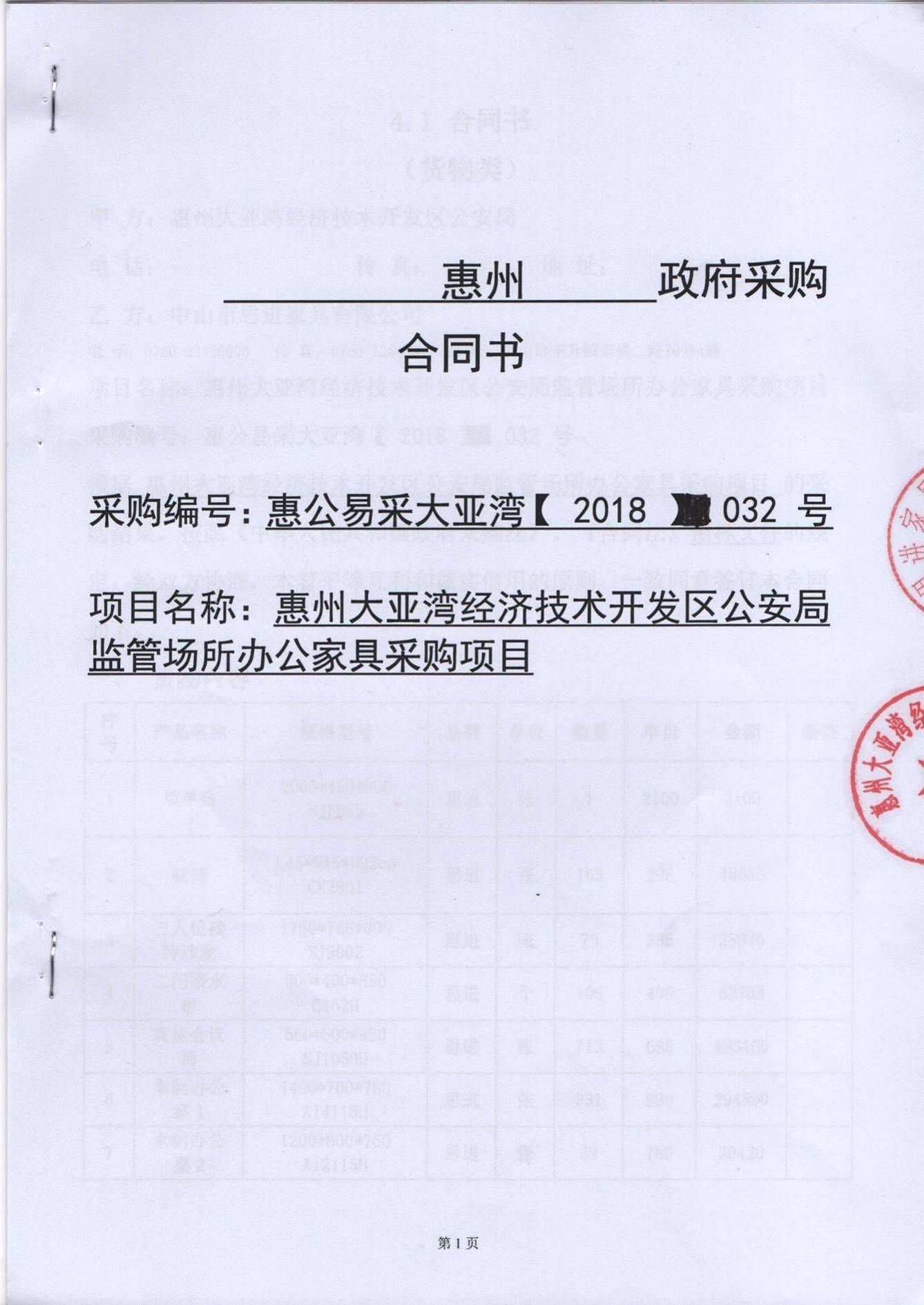 惠州大亞灣經濟技術開發(fā)區(qū)公安局監(jiān)管場所辦公家具采購項目